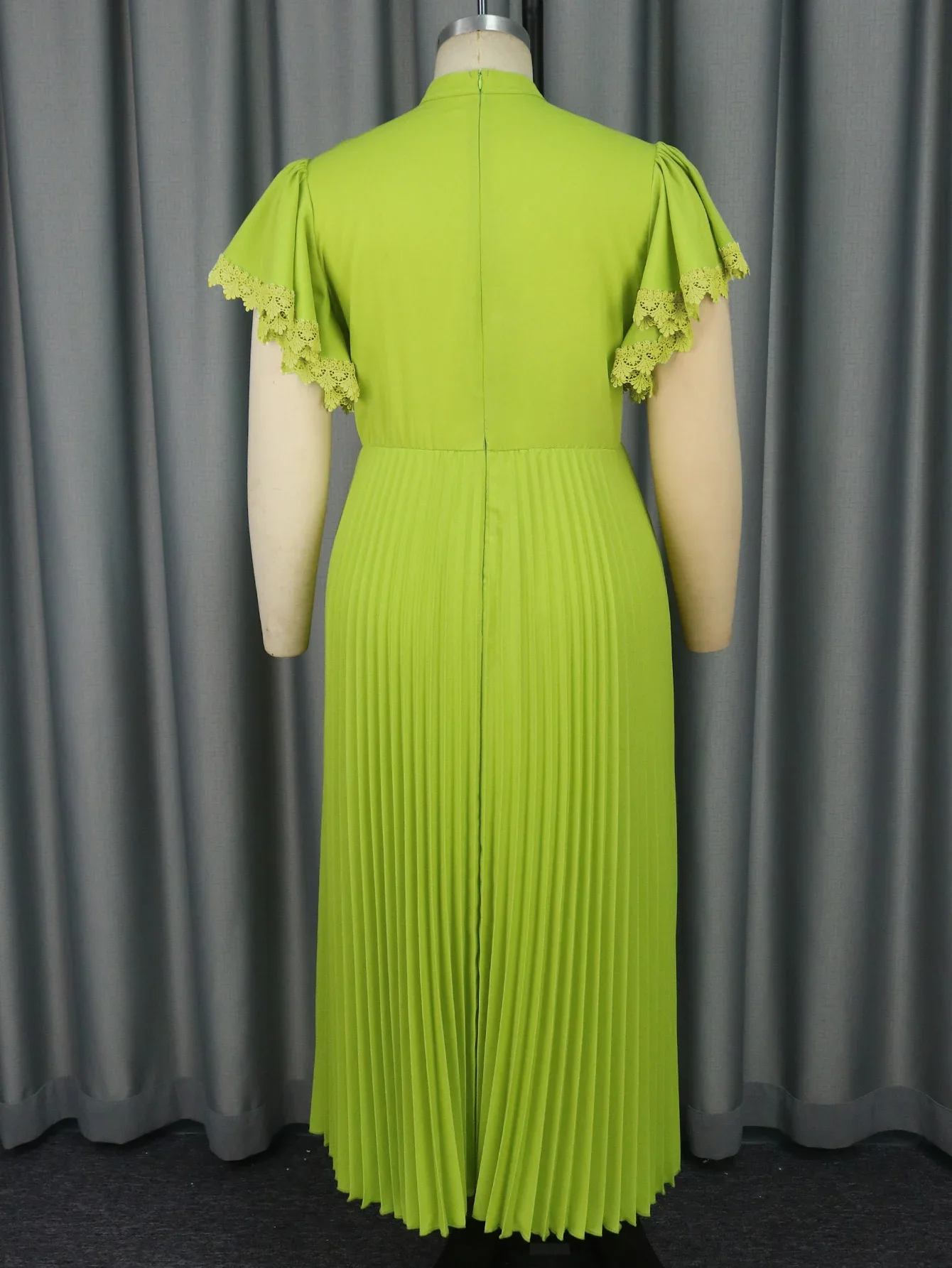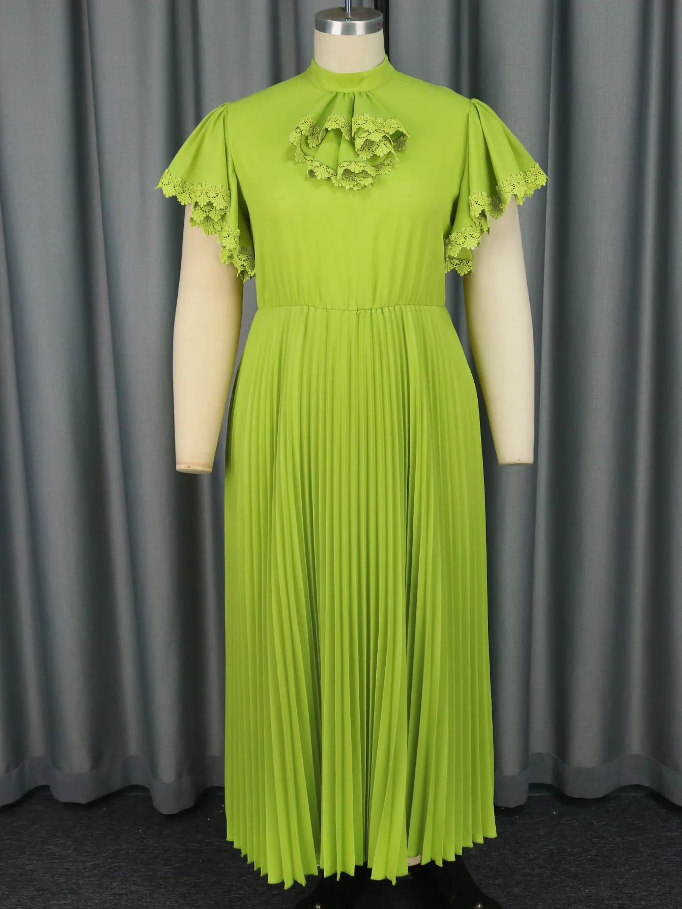 Amay Fashion Green Long Party Dress Half Collar Bowtie Butterfly Sleeves A Line Pleated Plus Size Evening Gown Birthday Church