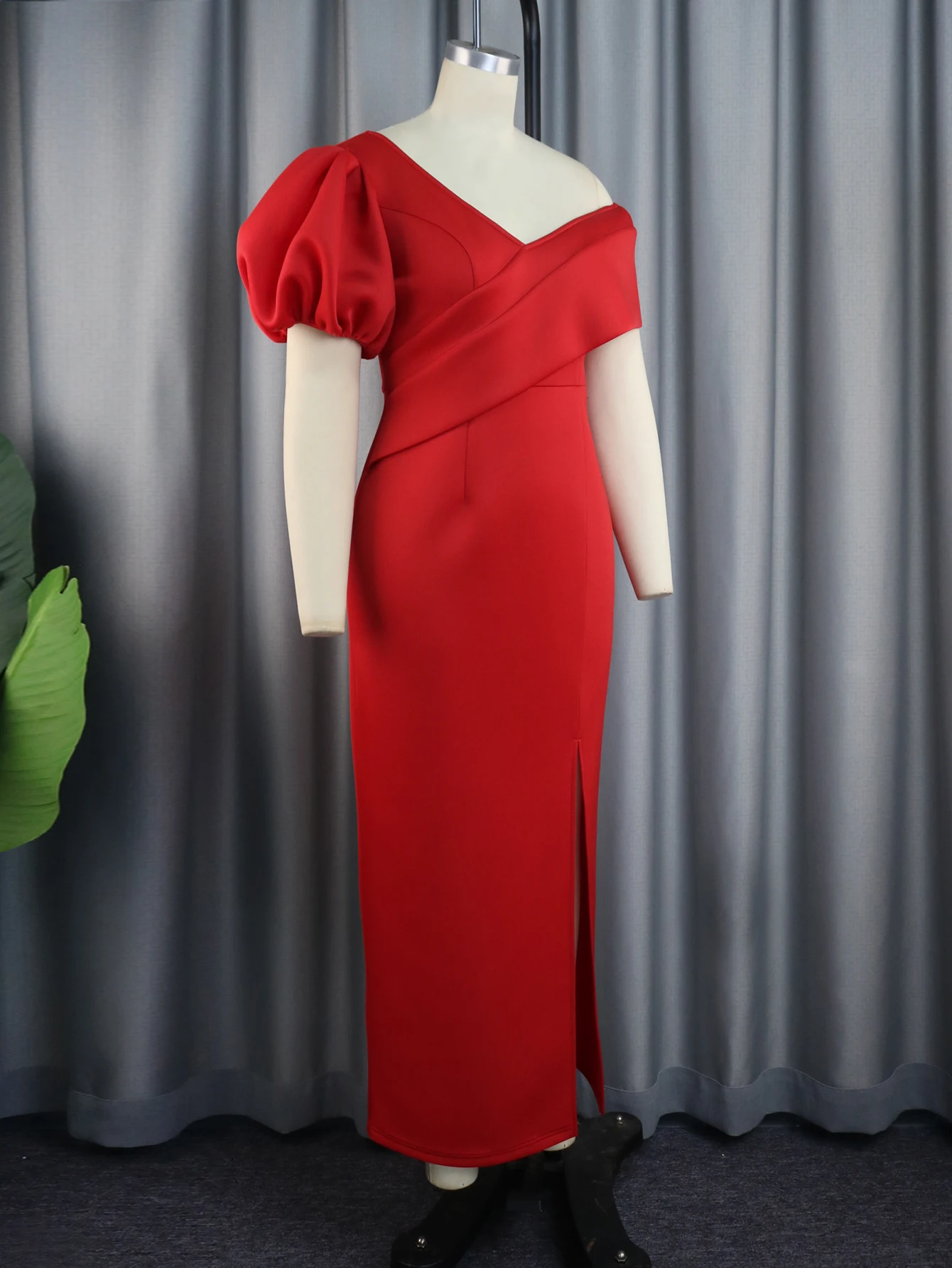 Women Formal Dresses Long Evening Gown maxy Classy Red V Neck Bare Shoulder One Sleeve Irregular Slit Dress Elegant Celebrate Outfit