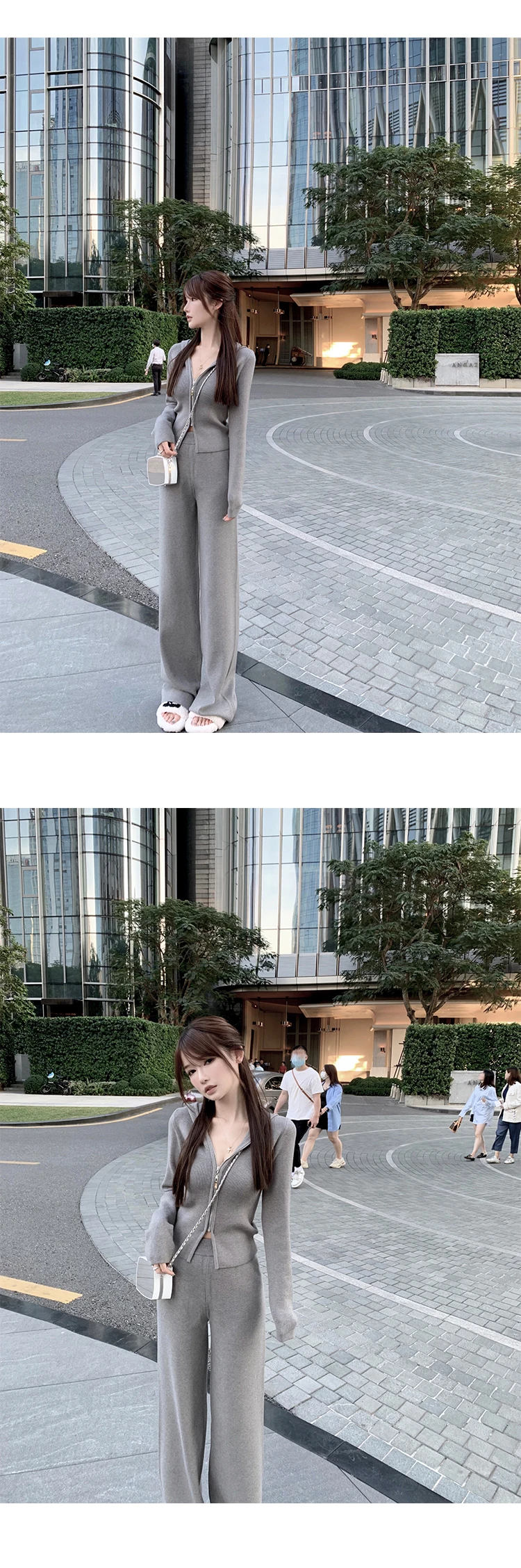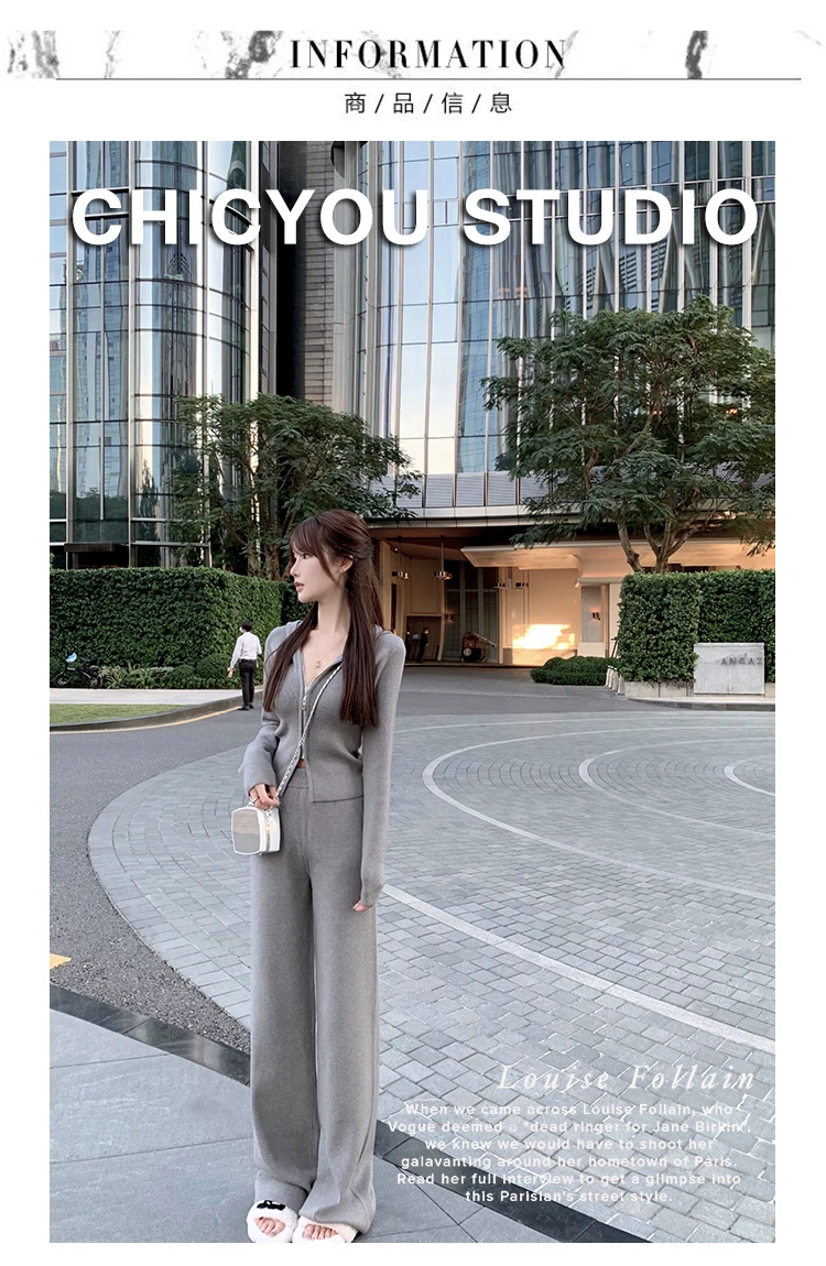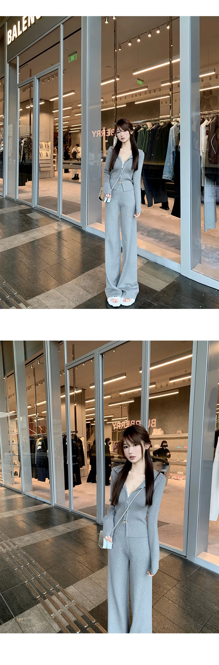 Women Knitted Tracksuits Autumn Winter Hooded Long Sleeve Short Jacket High Waist Wide Leg Pants Two Piece Set Fashion Outfits