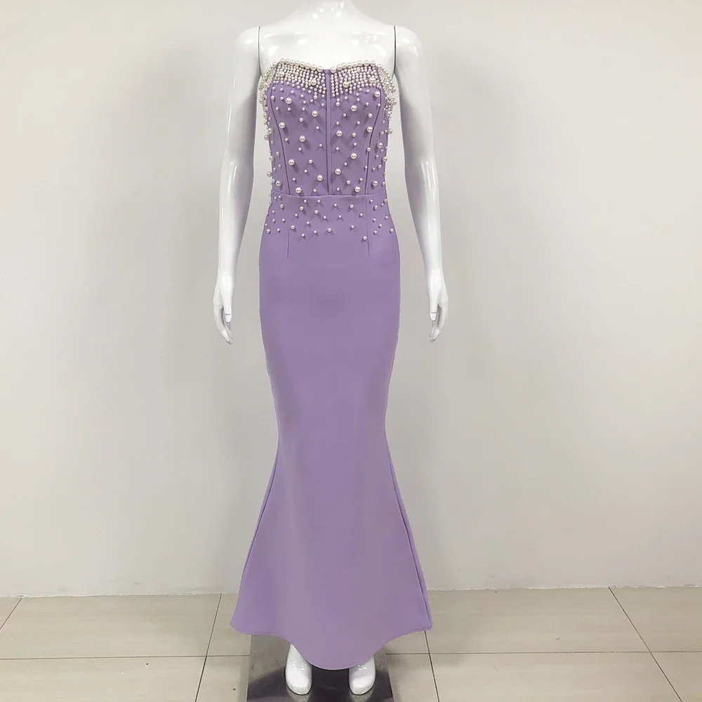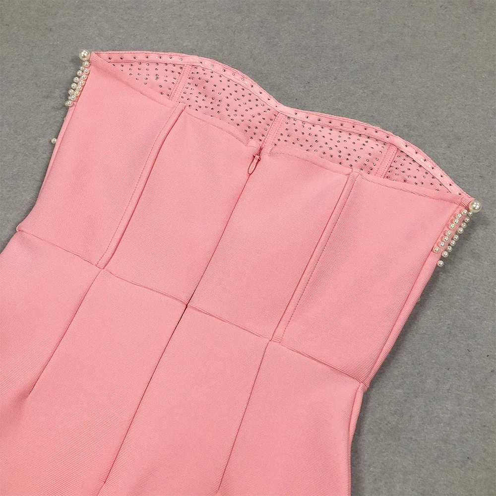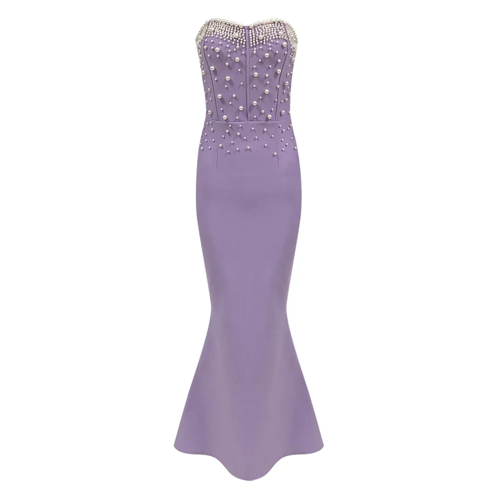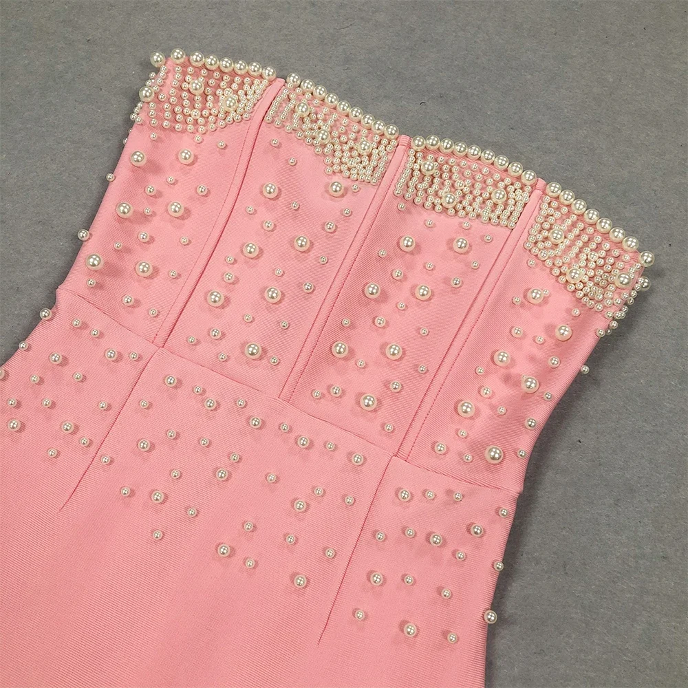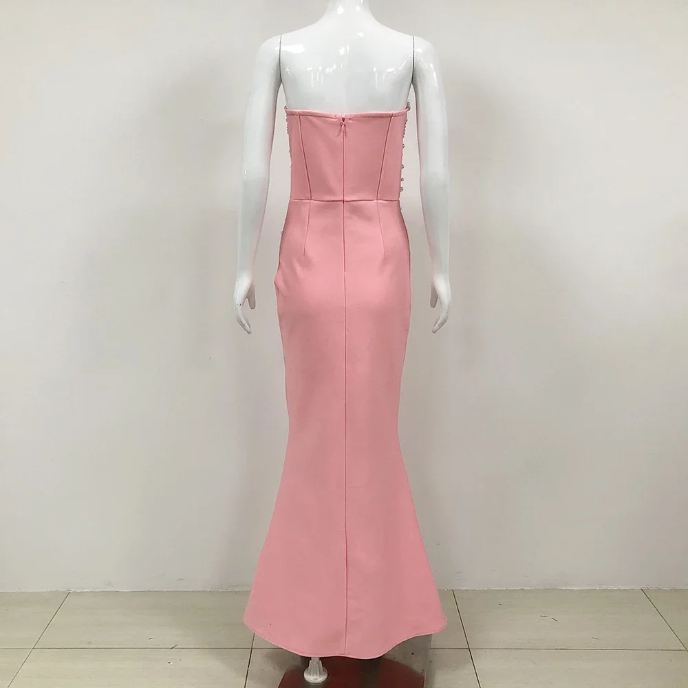 Women Pink Party Macy Mermaid Dress Elegant Strapless Pearl Beading Long Celebrity Evening Gowns Ladies High Fashion Gala Dress