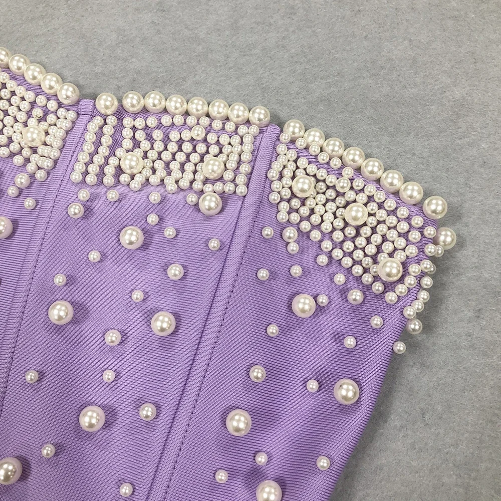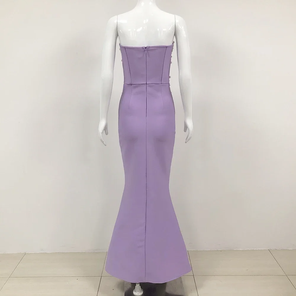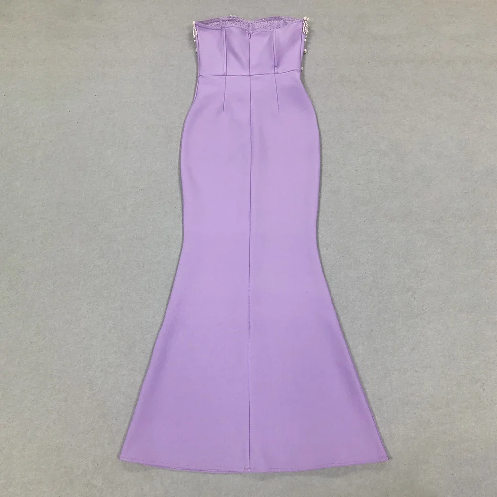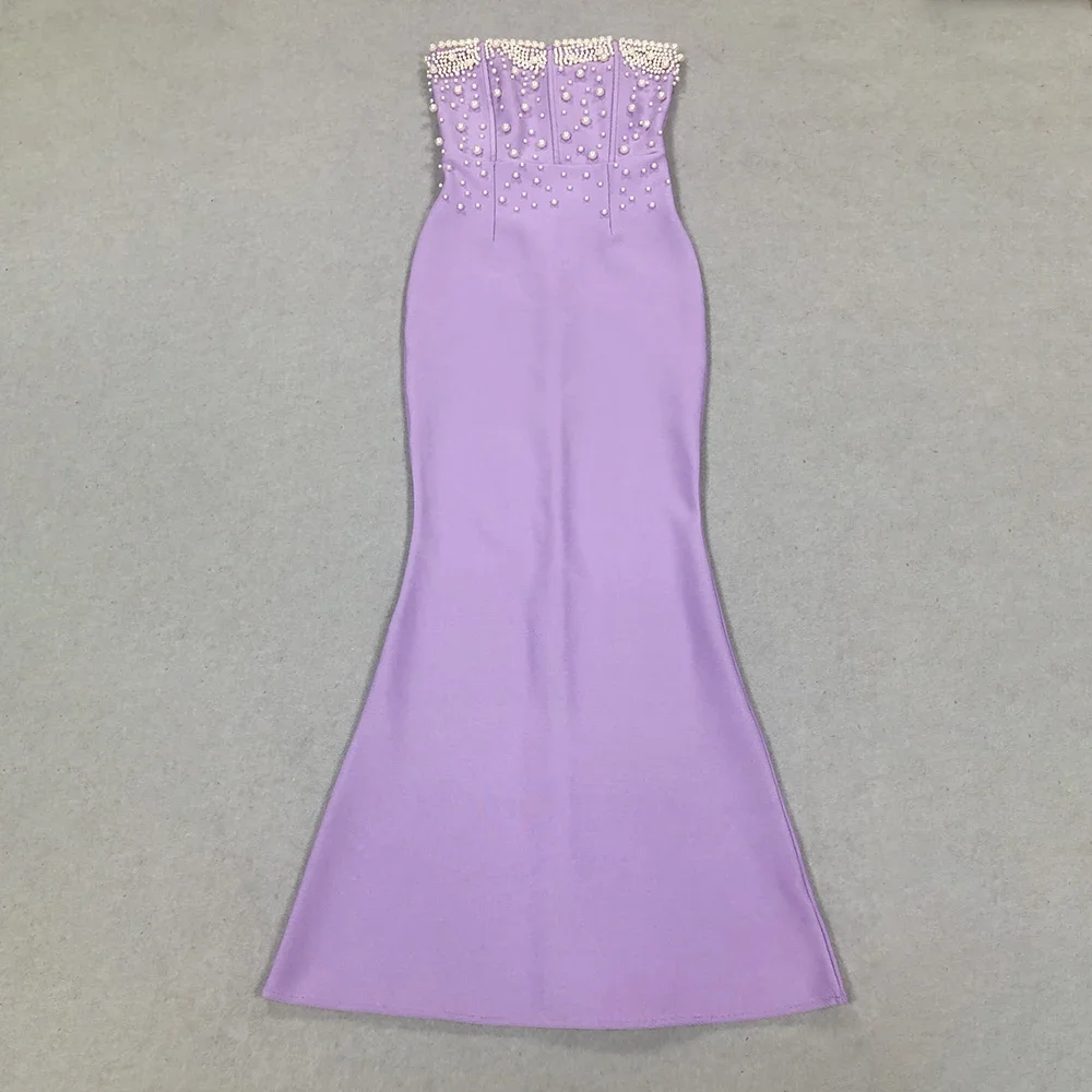 Women Pink Party Macy Mermaid Dress Elegant Strapless Pearl Beading Long Celebrity Evening Gowns Ladies High Fashion Gala Dress