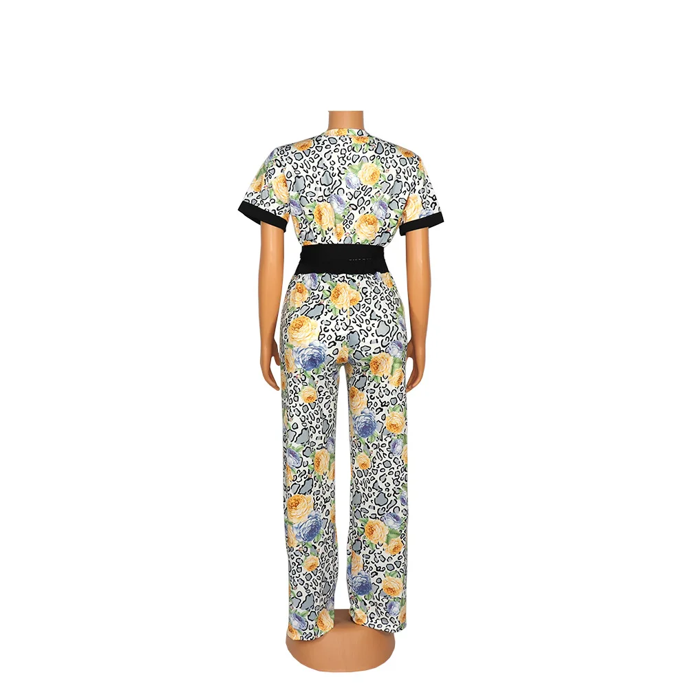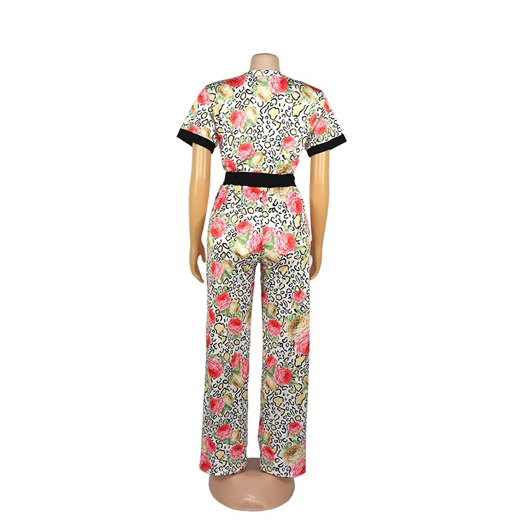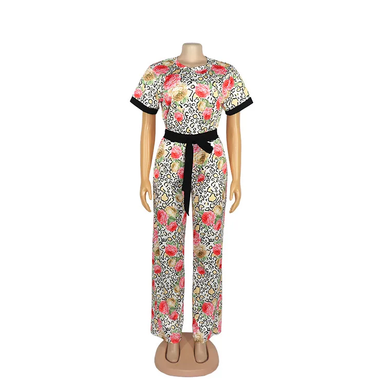 Women Printed Jumpsuit O Neck High Waist with Waist Belt Short Sleeve Elegant Retro African Female One Piece Rompers Vintage New