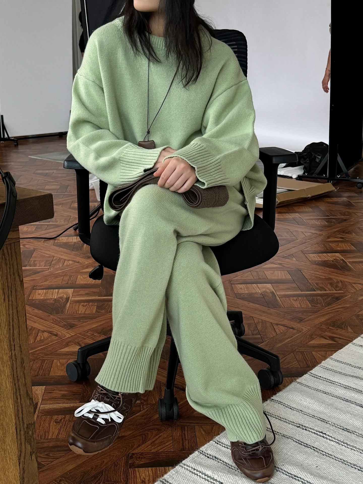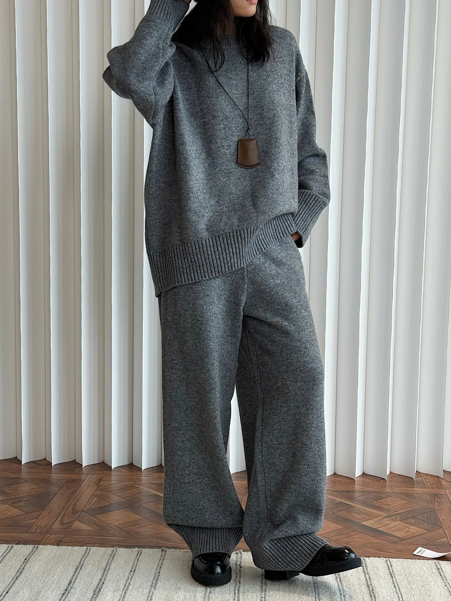 Women Sweater Suits High Quality 50% Wool Pullover With Knitted Pants Two Piece Sets Tracksuits Ladies Outfits Winter Clothes