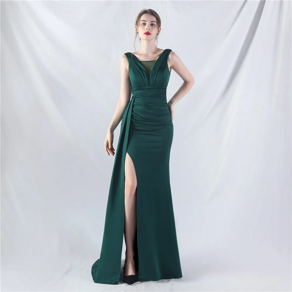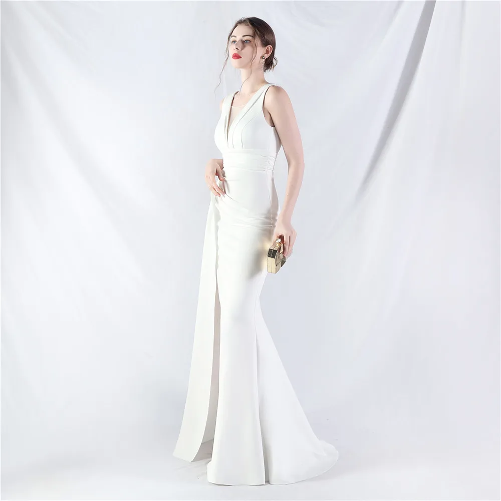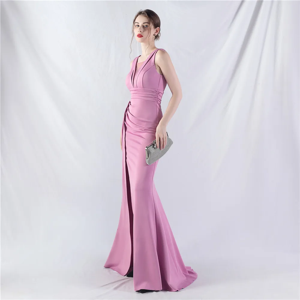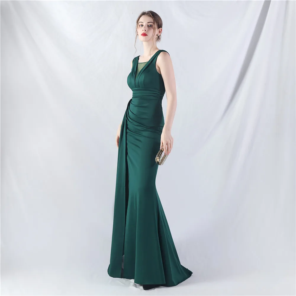 Zay Women's customized Sleeveless Crumpling Process Prom Dress Floor Length Mermaid Maxy Party Gown Evening Dress