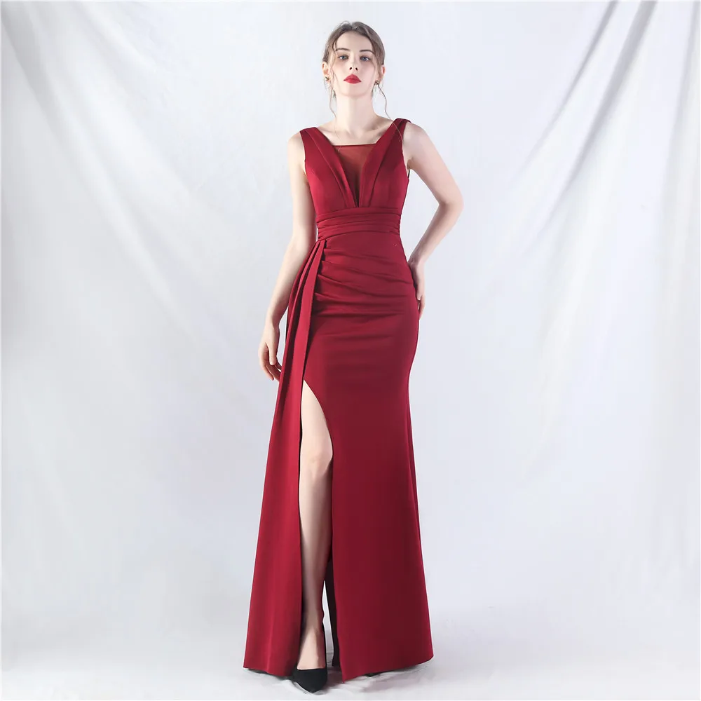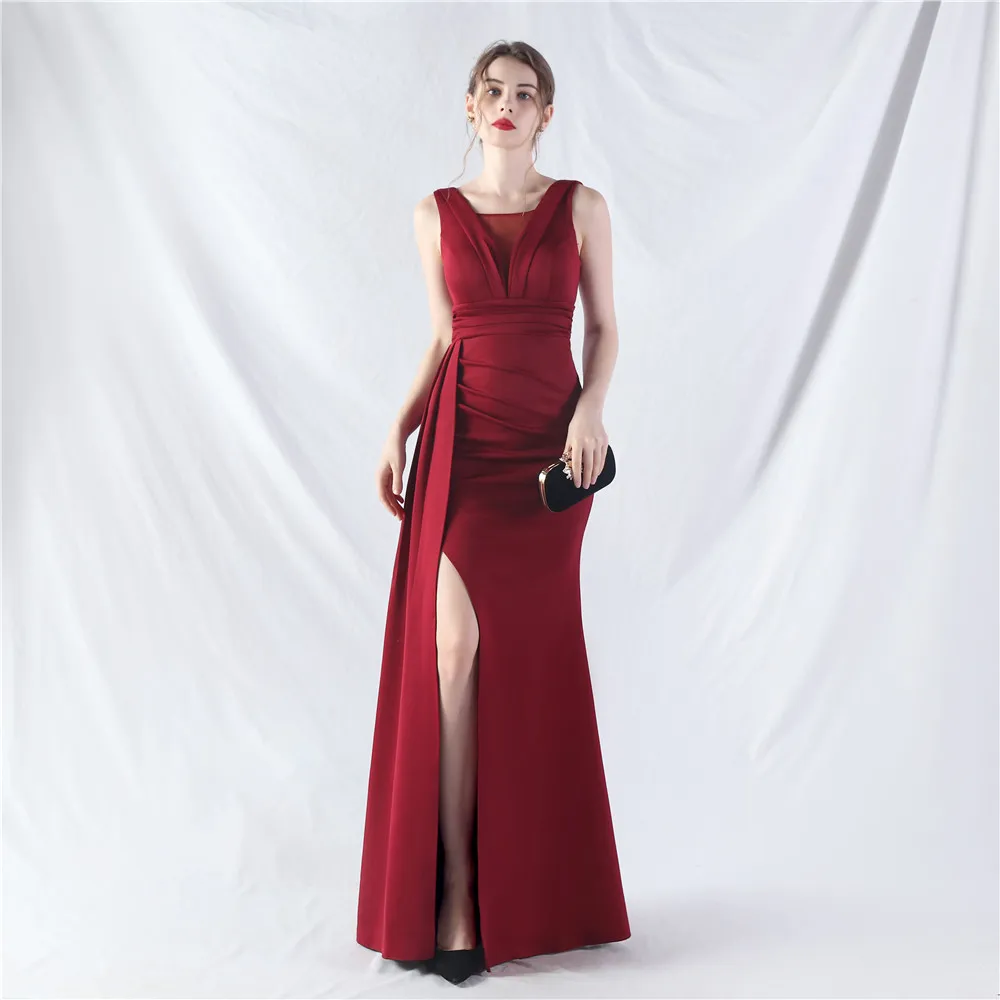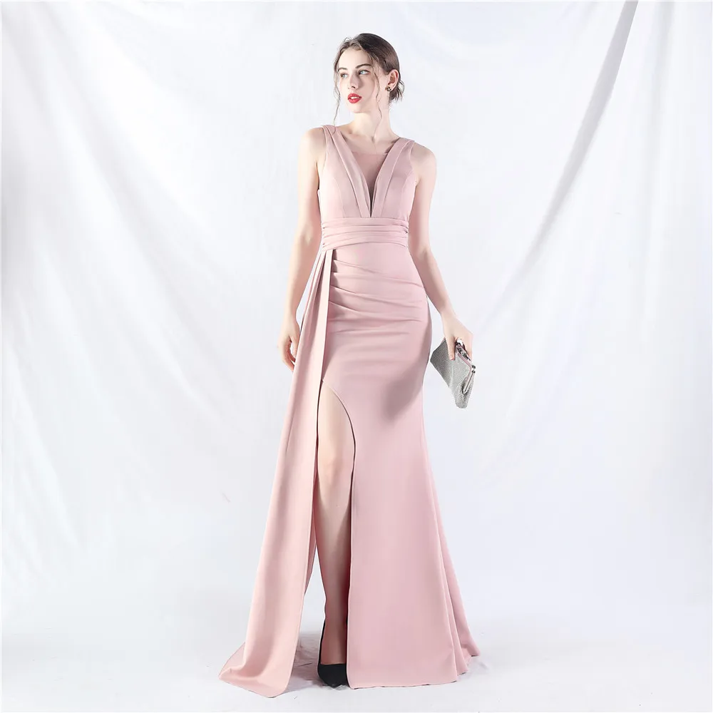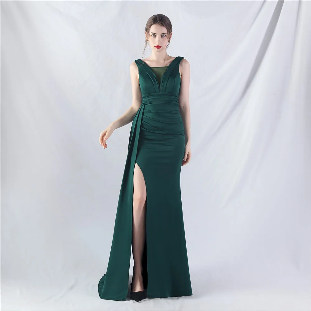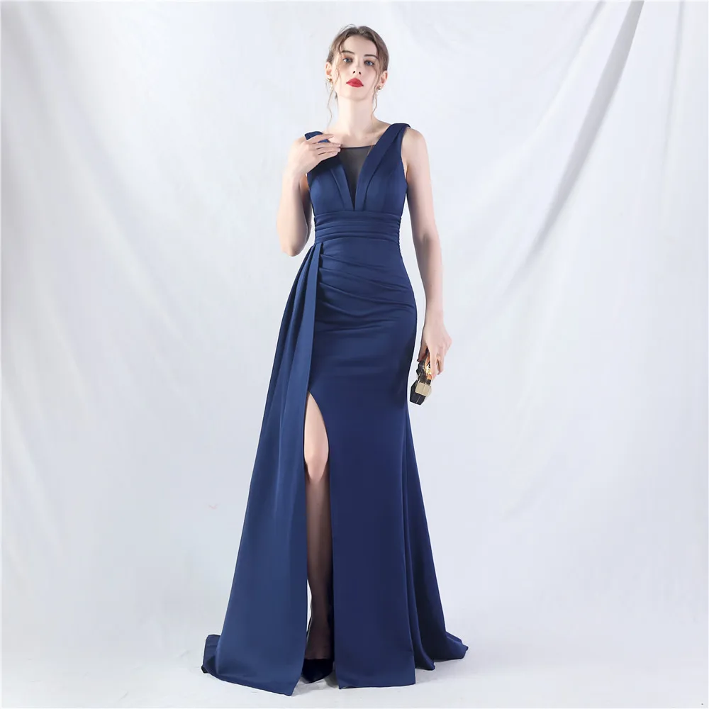 Zay Women's customized Sleeveless Crumpling Process Prom Dress Floor Length Mermaid Maxy Party Gown Evening Dress