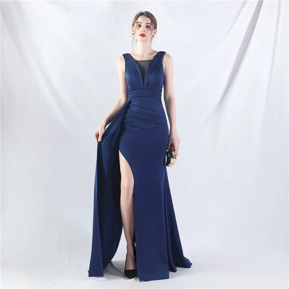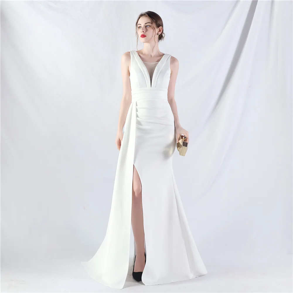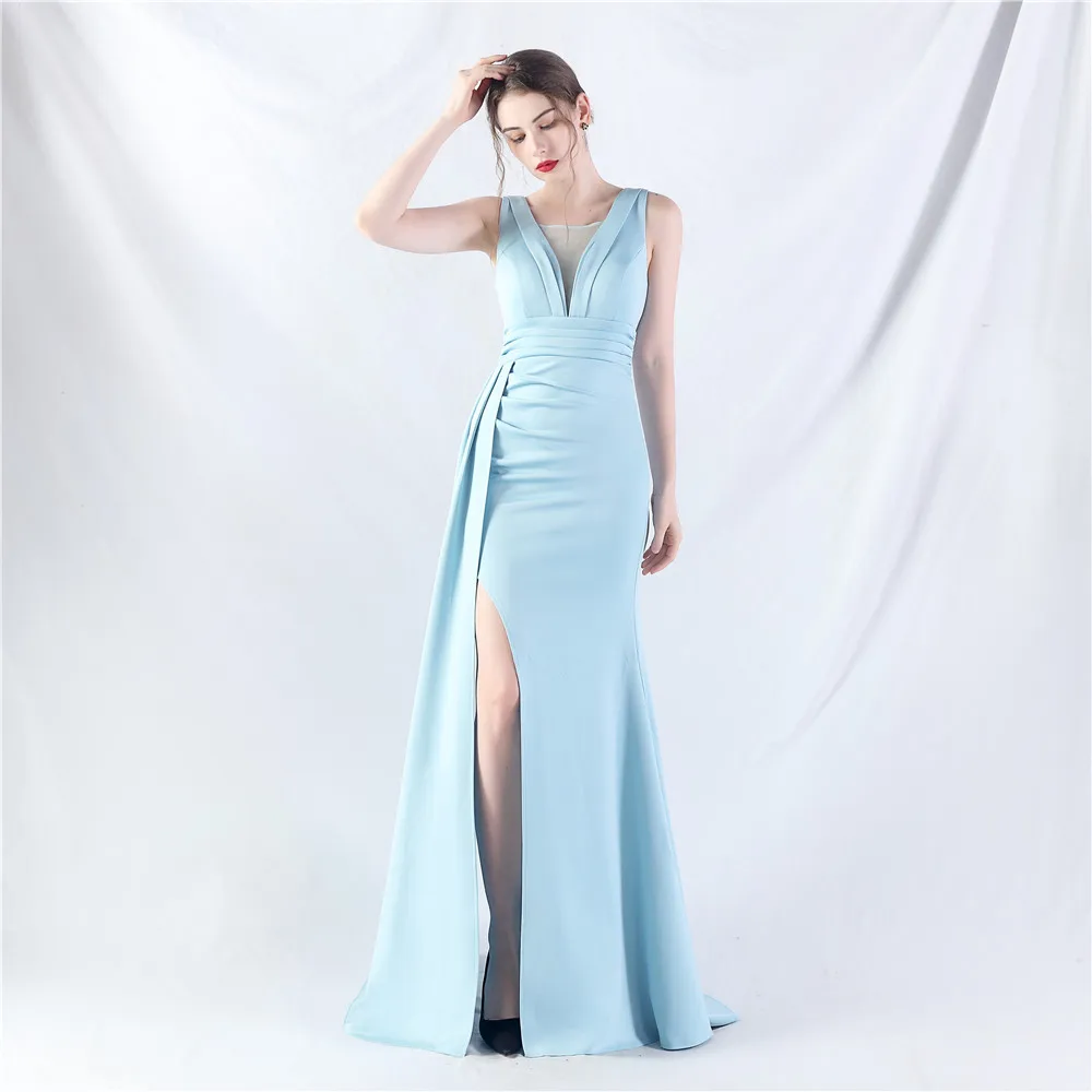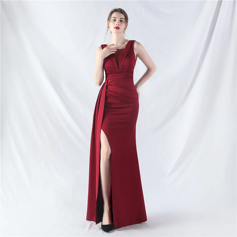 Zay Women's customized Sleeveless Crumpling Process Prom Dress Floor Length Mermaid Maxy Party Gown Evening Dress