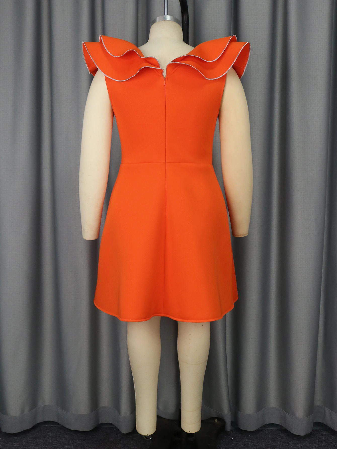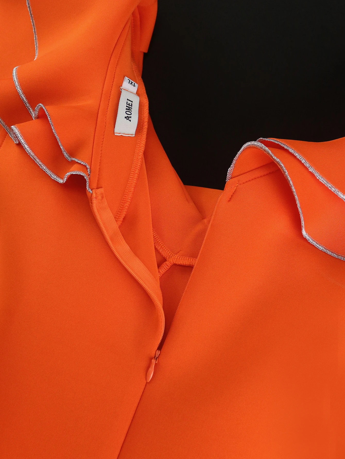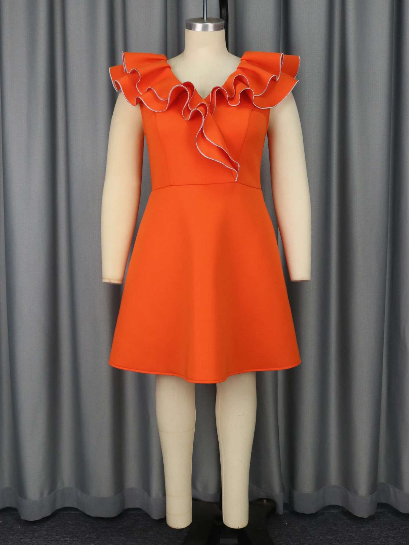 Zay Women's Elegant Party Dresses Orange Ruffle V Neck Sleeveless Lovely Sweet High Waist Puffy Knee Length Gown Evening Night Prom