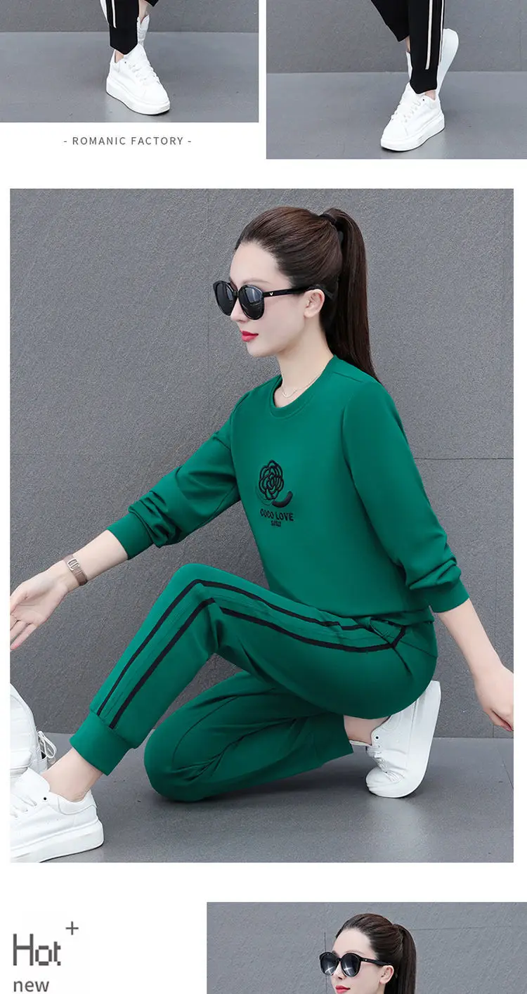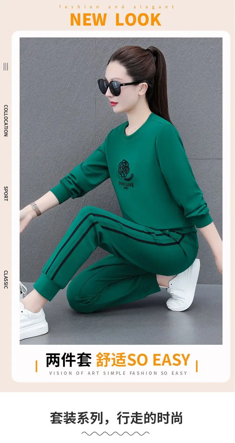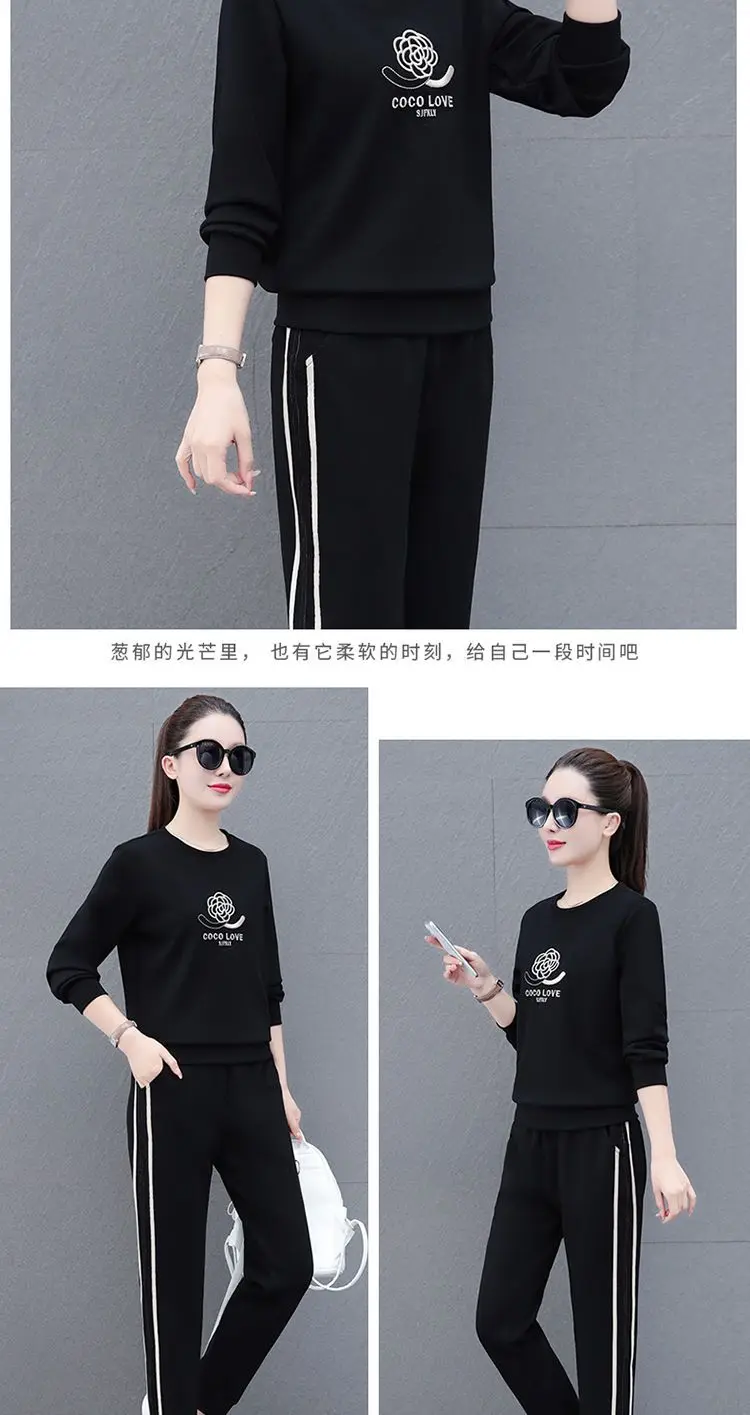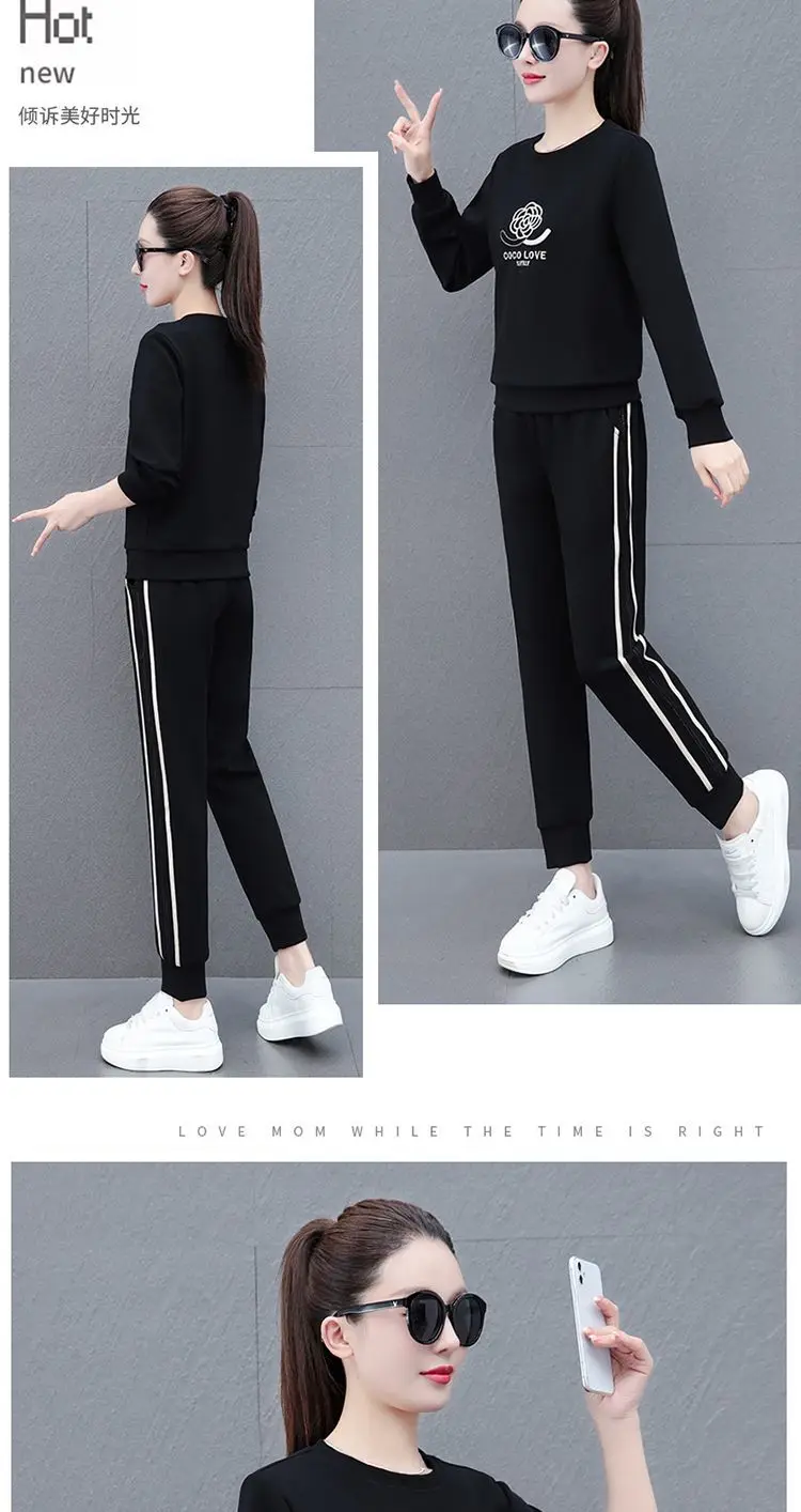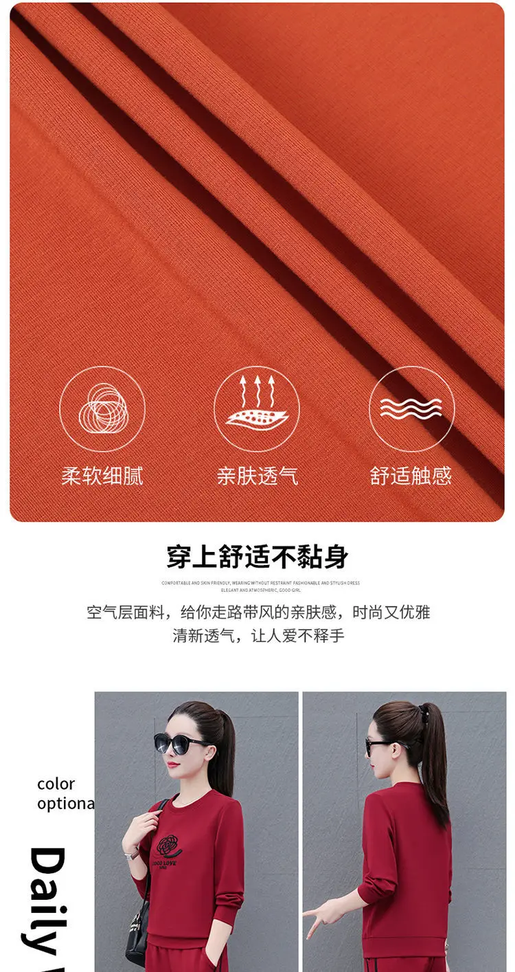 Zay Women's Round Necked Sports Suit Spring And Autumn New Fashion Korean Long Sleeve Crop Top And Pants 2 Two Piece Set For Women