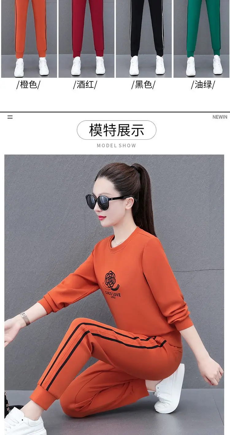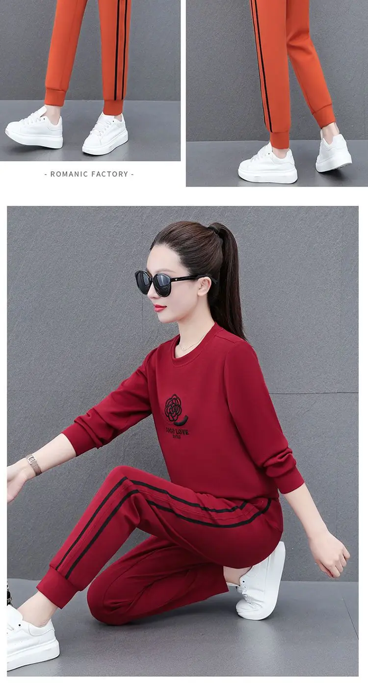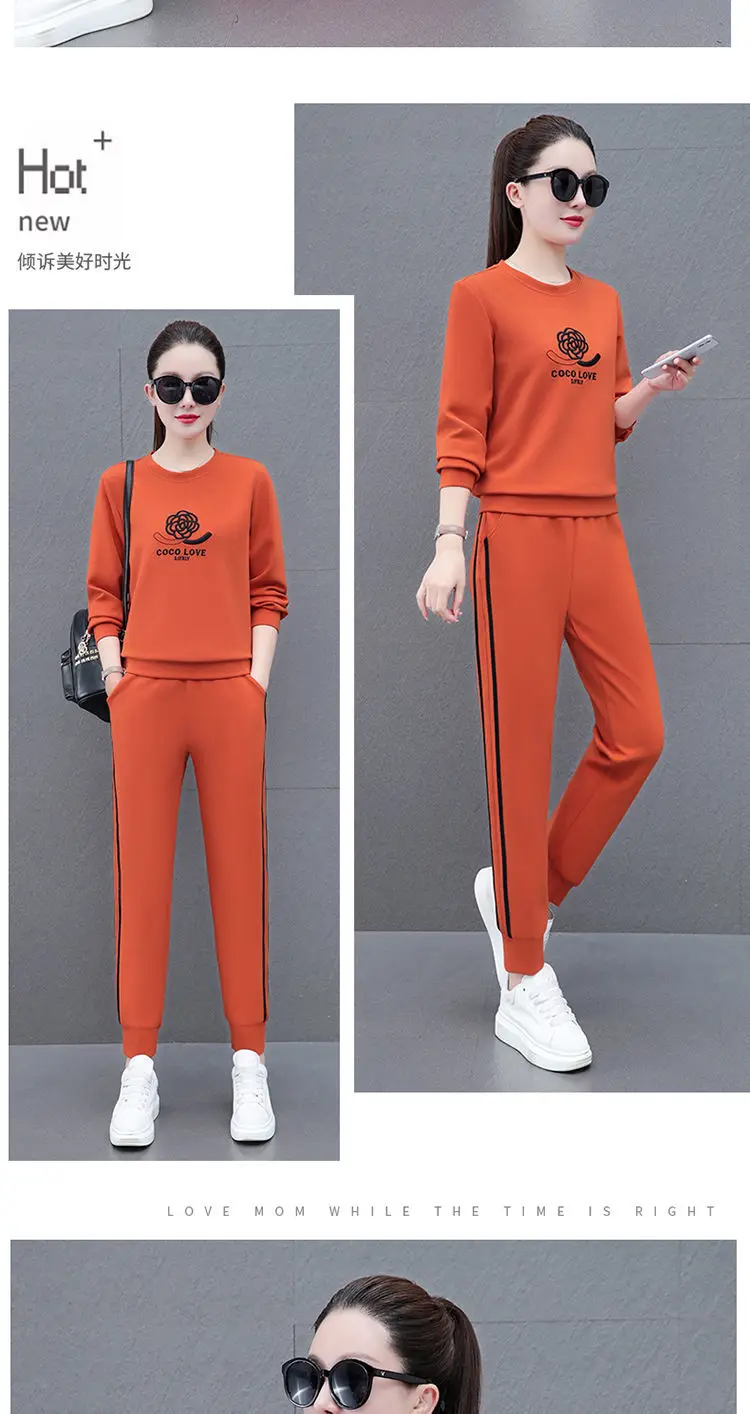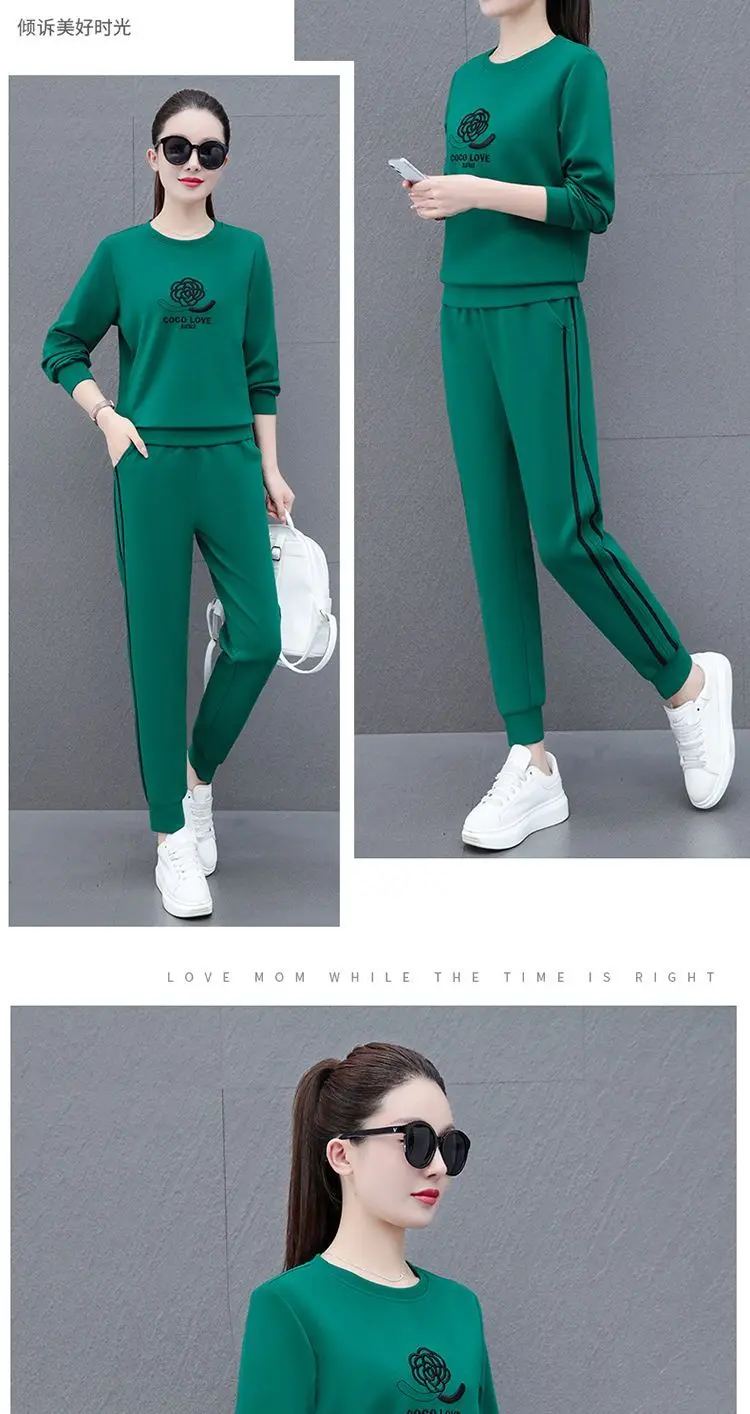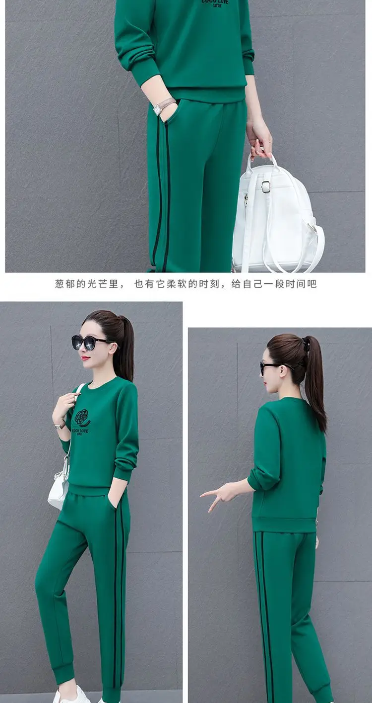 Zay Women's Round Necked Sports Suit Spring And Autumn New Fashion Korean Long Sleeve Crop Top And Pants 2 Two Piece Set For Women