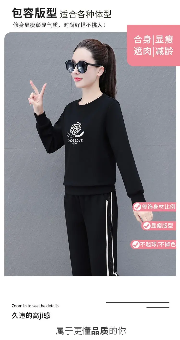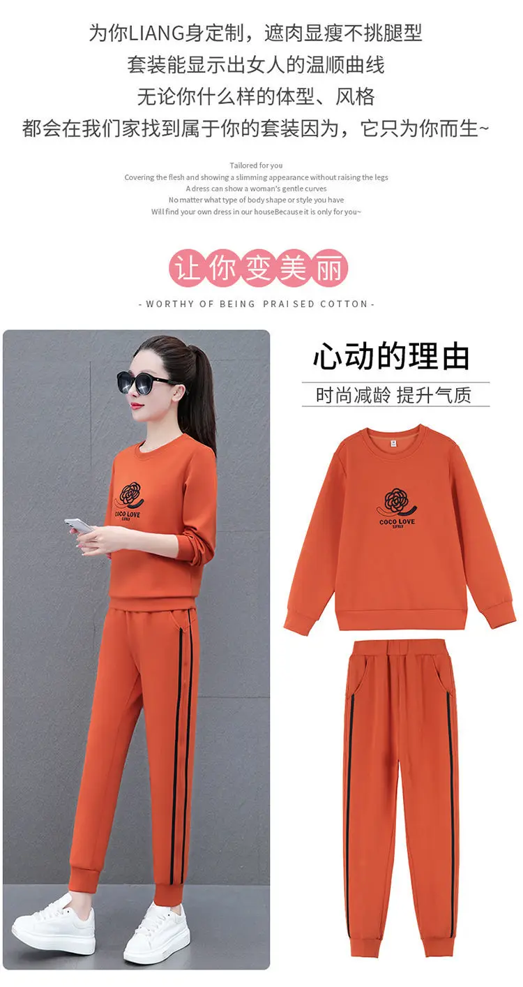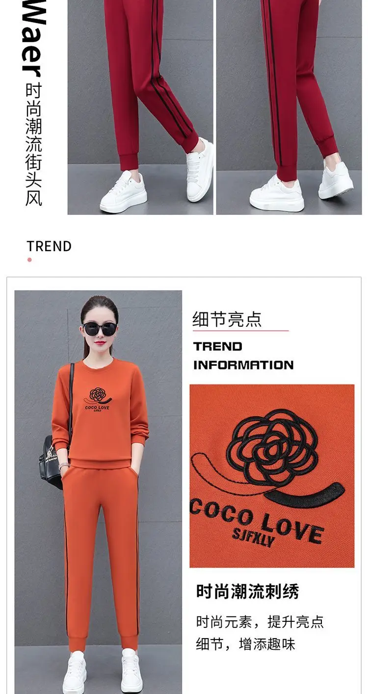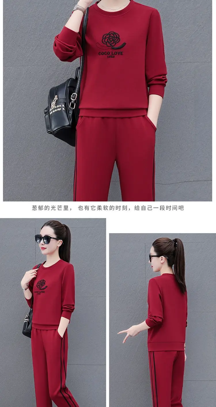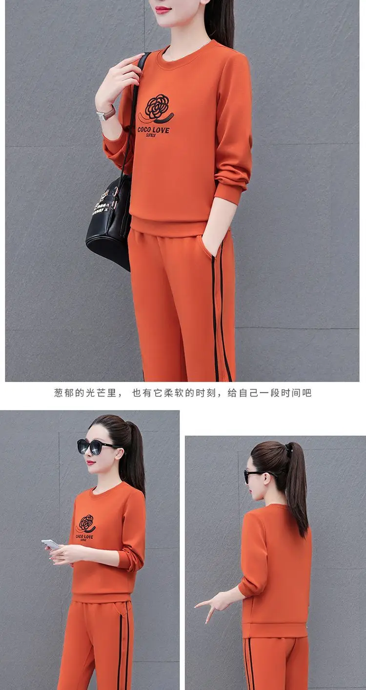 Zay Women's Round Necked Sports Suit Spring And Autumn New Fashion Korean Long Sleeve Crop Top And Pants 2 Two Piece Set For Women