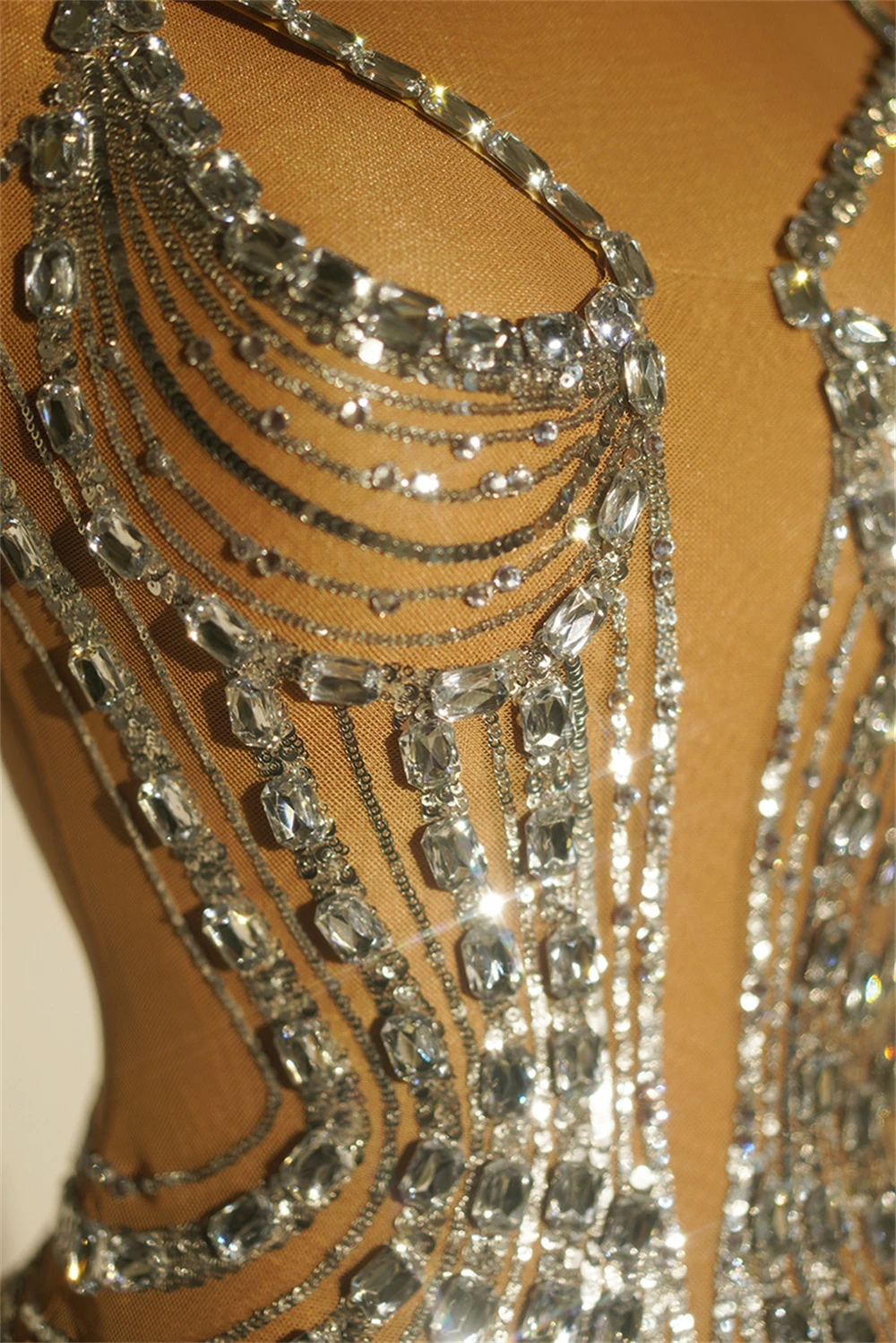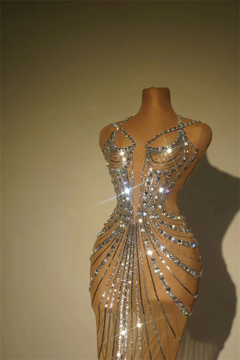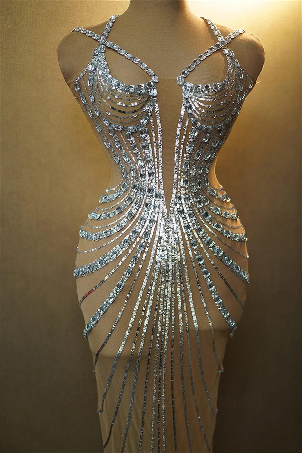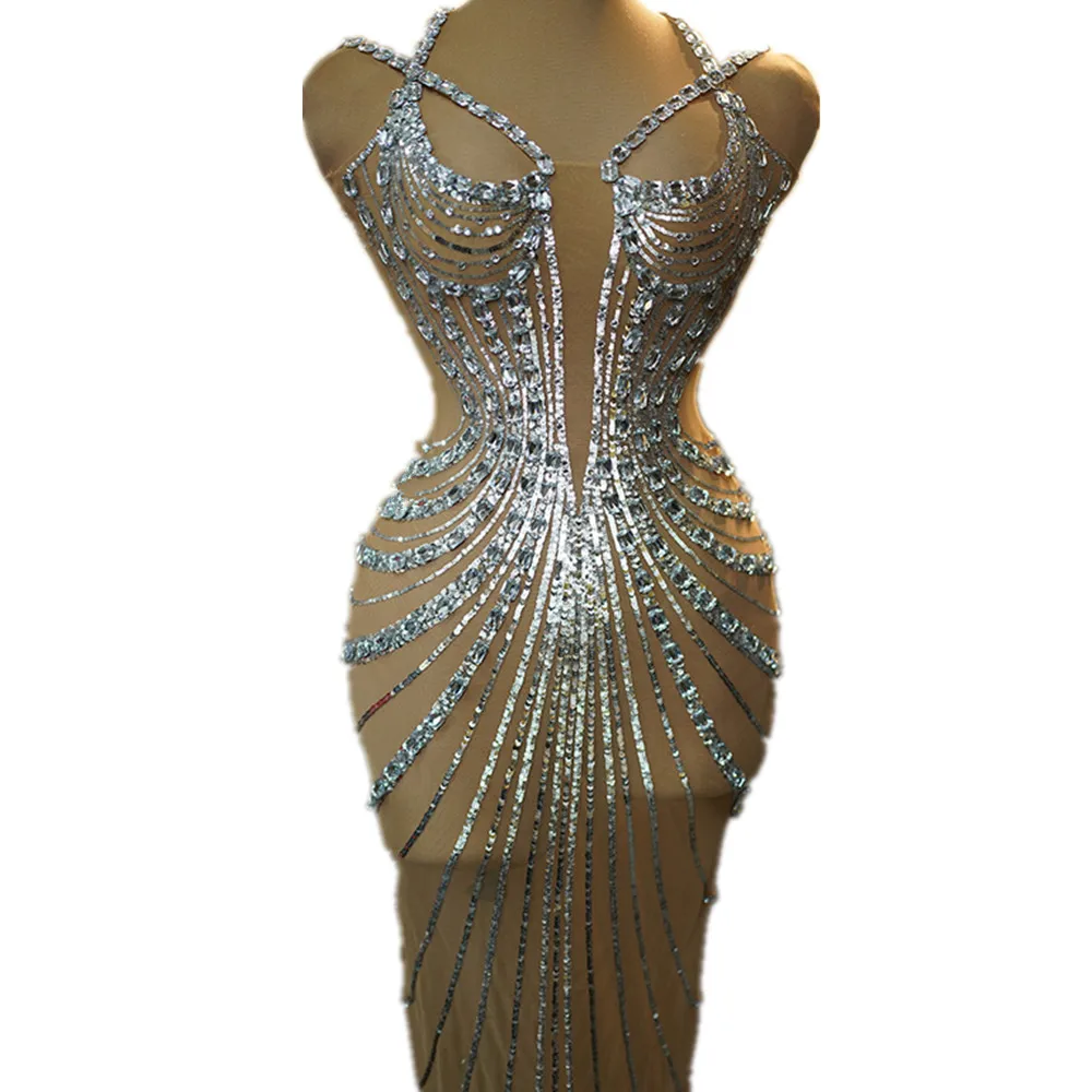 Zay Women's Sparkly Sequins and Diamonds Party Dress See Through Feather Prom Evening Gown Singer Stage Outfit Celebrity Luxury