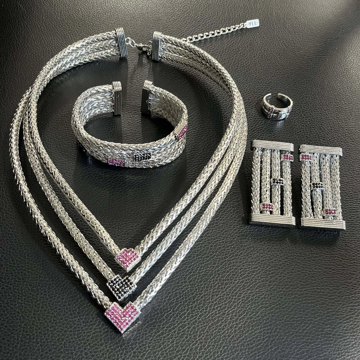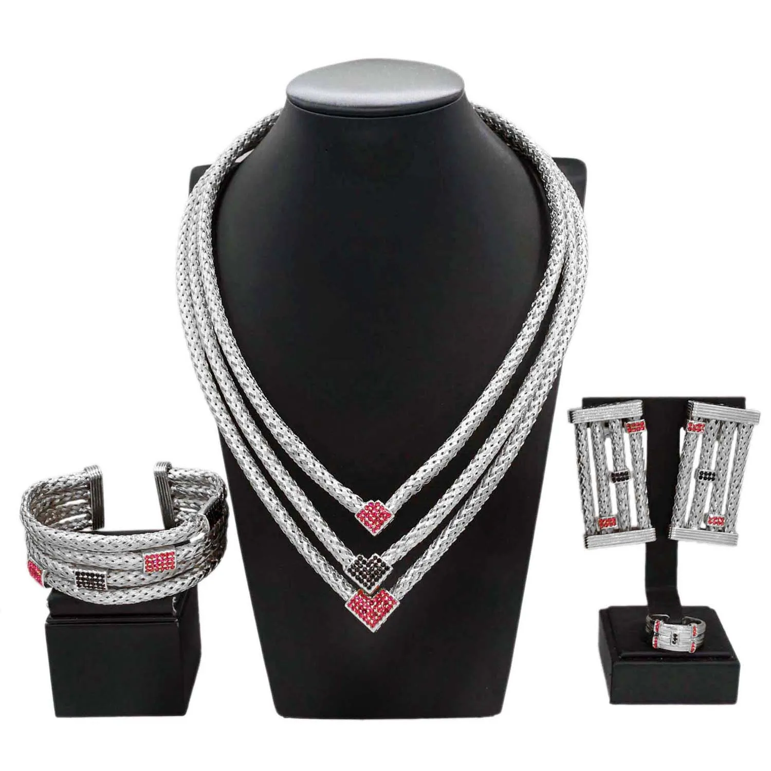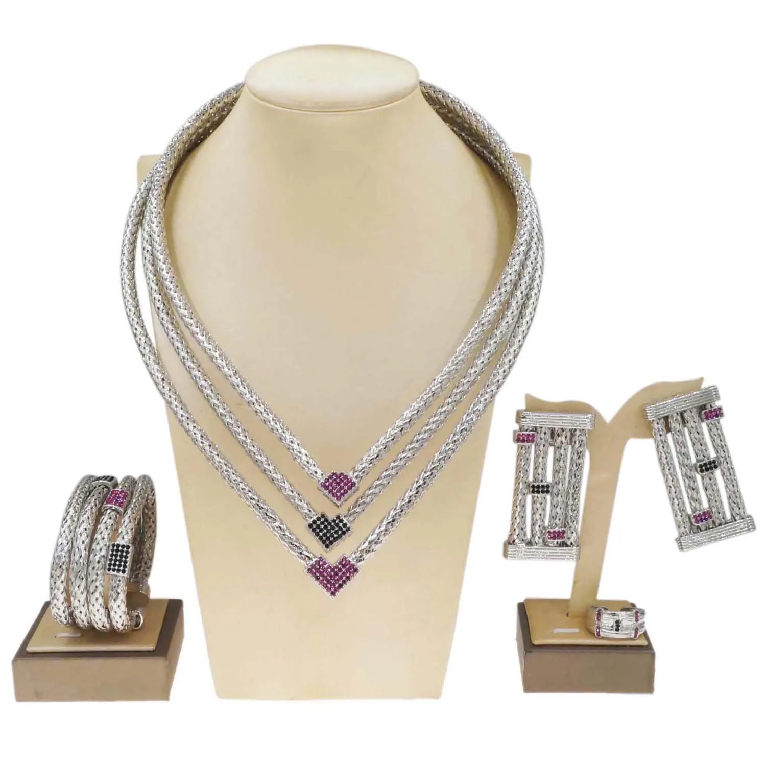 Yulaili's new unique design jewelry set Italian gold plated three layer copper ring advanced African Dubai bride wedding necklace ring