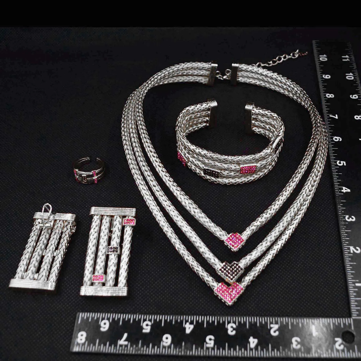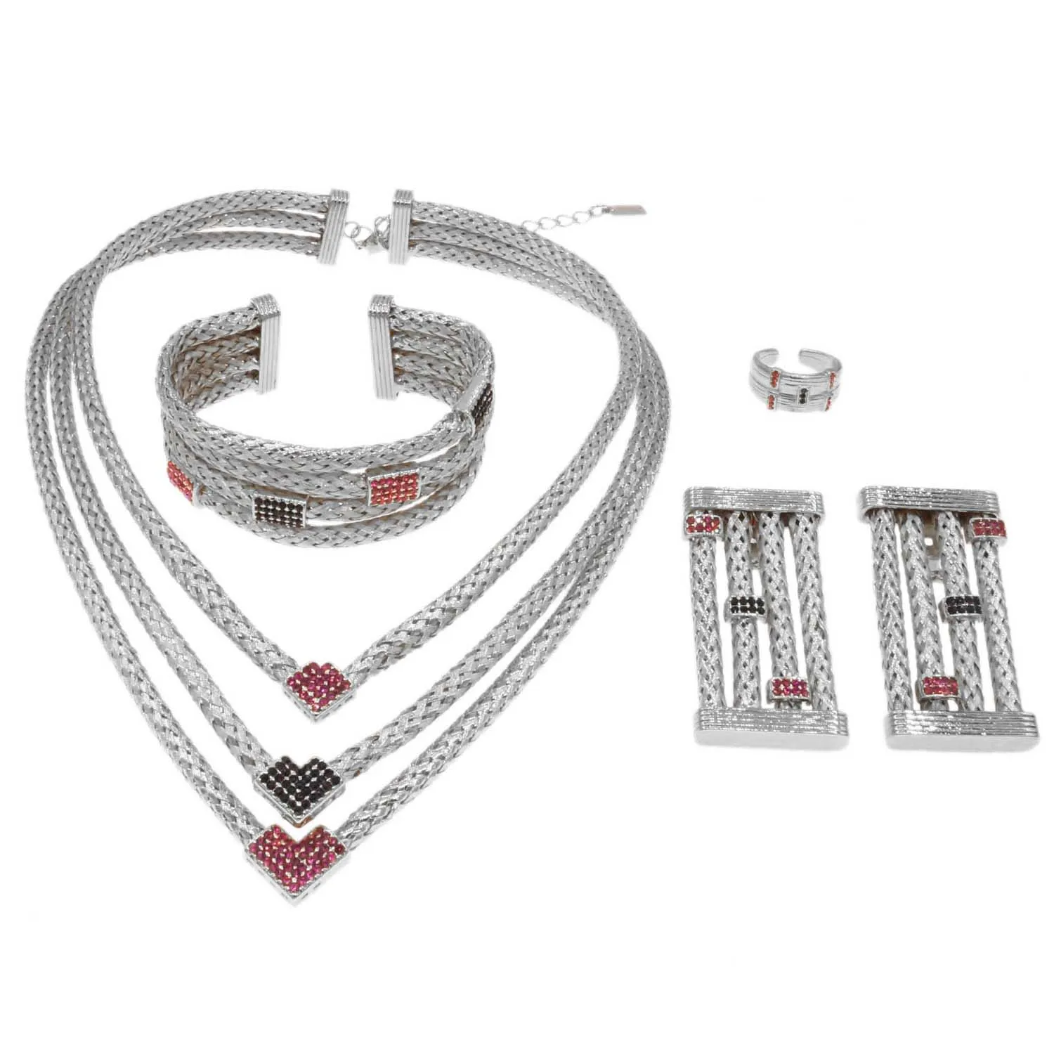 Amay new unique design jewelry set Italian gold plated three-layer copper ring advanced bride wedding necklac